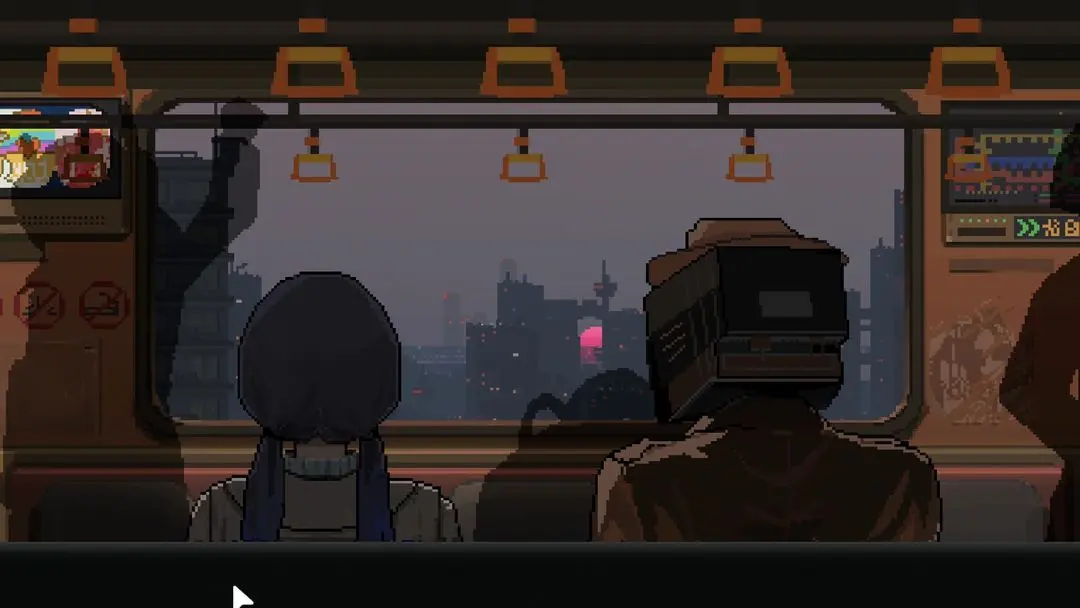 5. 沉浸式氛围营造:游戏通过雨夜窗外的全息广告、天桥上的落日余晖等细节场景,配合像素化音符与音效,烘托出孤独与温情交织的沉浸氛围。