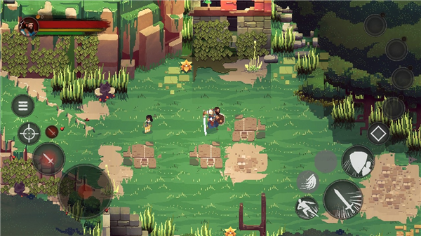7.左侧为人物移动,右侧为功能按键,然后我们就可以在这个世界中进行探险了。