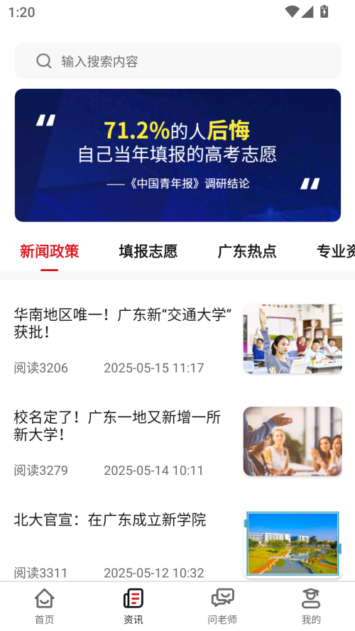 4、高考动态:通过资讯版块传递高考动态,APP实时推送填报事项、投档信息,不错过关键机会。