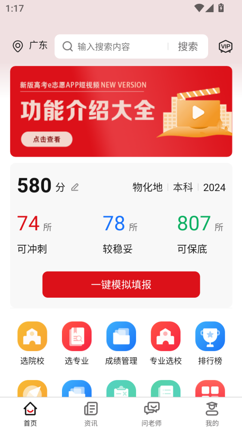 1、高考e志愿:专为志愿填报打造的实用辅助工具,助力精准填报。