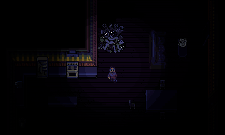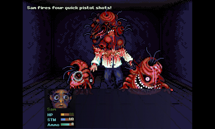 3. 像素风格与视觉冲击:游戏采用低像素画风,但通过血肉蠕动的墙壁、眼球监控装置等细节营造出克苏鲁式的惊悚美学。变异生物设计独特,如打字机怪物可“打字杀人”,汽车人能强制带玩家驶向地狱。