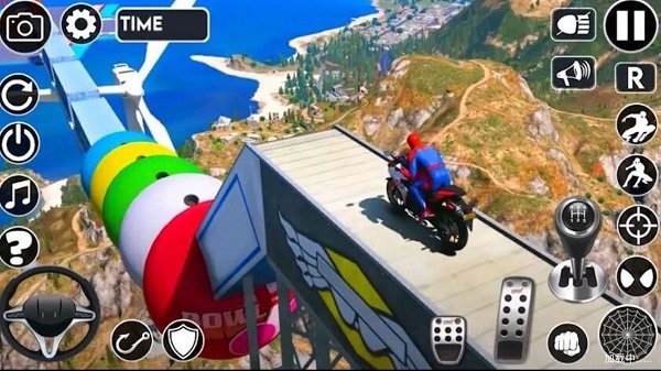 2. 赛道与场景设计:赛道覆盖城市街道、高速公路、荒漠等多元地形,每张地图均包含标志性建筑与动态天气系统。例如,城市赛道中可能出现高楼林立的狭窄街道,荒漠赛道则以沙尘暴天气增加驾驶难度。赛道中还设置了高山、湖泊、升降杆、带刺滚轮等障碍物,玩家需通过“W键抓地骑行”保持平衡,或利用“D键后轮抬起”“A键前轮抬起”完成特技动作跨越障碍。
