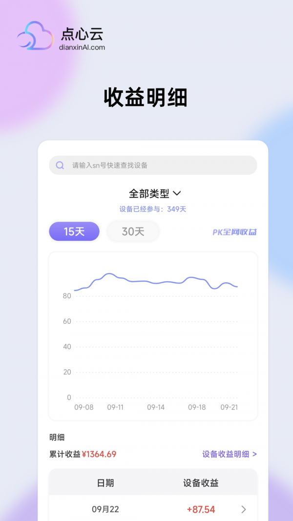 1. 实时收益查看:用户可随时通过app查看设备收益,了解收益情况。