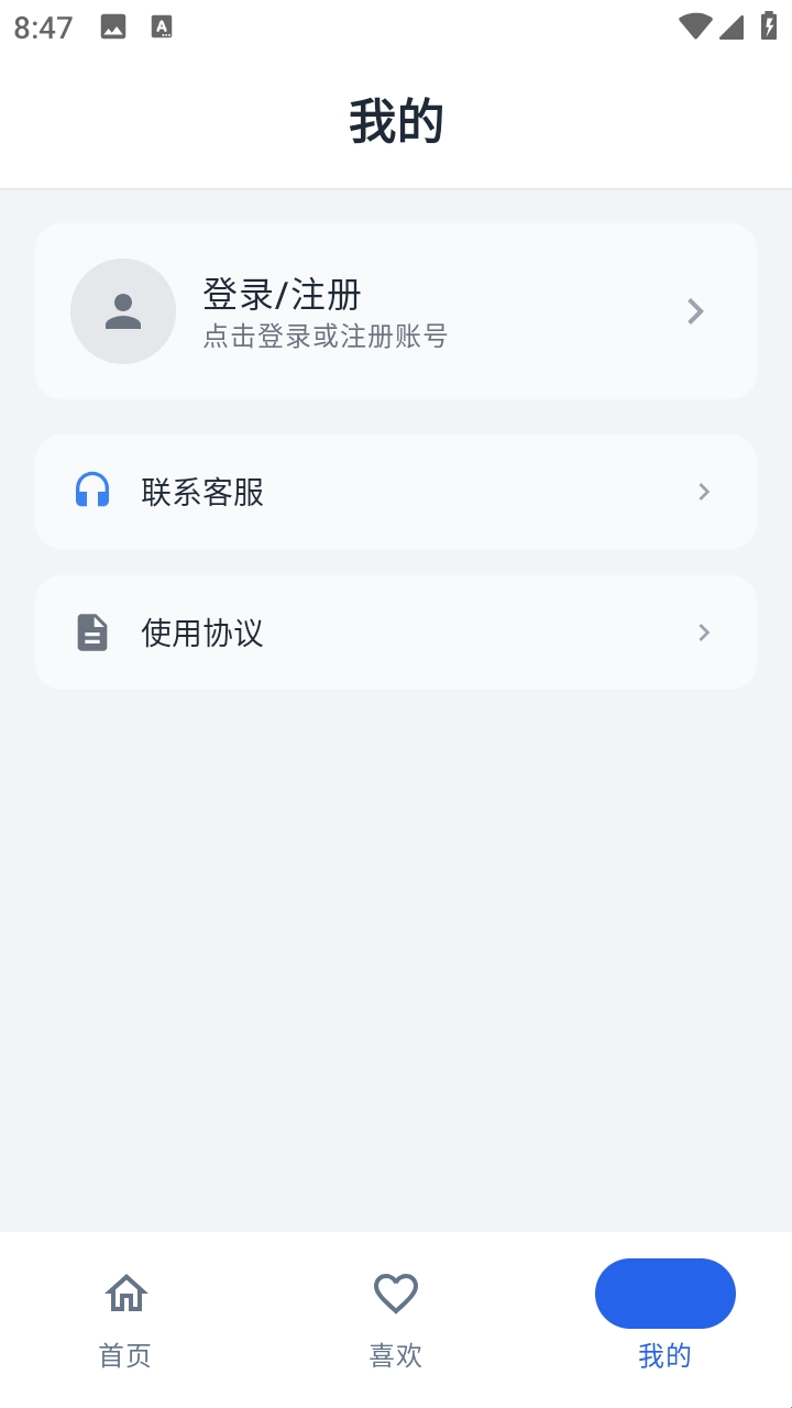 2、点击页面右下角【我的】,进入个人中心后选择【登录/注册】选项;