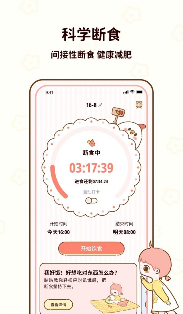 咕咕轻断食App是一款减肥工具,主要的方式是以轻断食来管理用户每天的进食量。软件中含有智能ai的算法,能够为用户提供健康科学的轻断食方案,不仅注重了餐饮的组合搭配之间的营养价值,也注重了用户吃食时候的口感,软件为用户提供了个性化的定制服务,能够真正感受到自己在慢慢瘦下来。