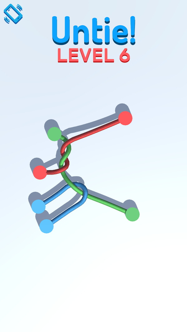 这是一款非常生活化的小游戏,生活中大家一定被缠绕的耳机线,数据线,甚至打结的头发烦恼过吧,在这款游戏中,给玩家一次畅快解开绳结的机会,玩家只需要将绳子点松,在慢慢解开就可以成功,锻炼耐心小利器。