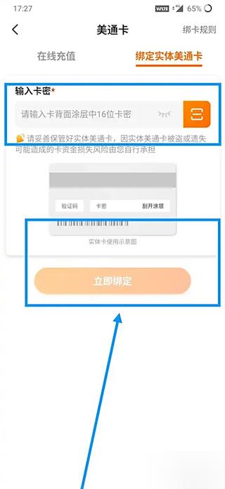 6、输入卡密信息,完成绑定操作。
