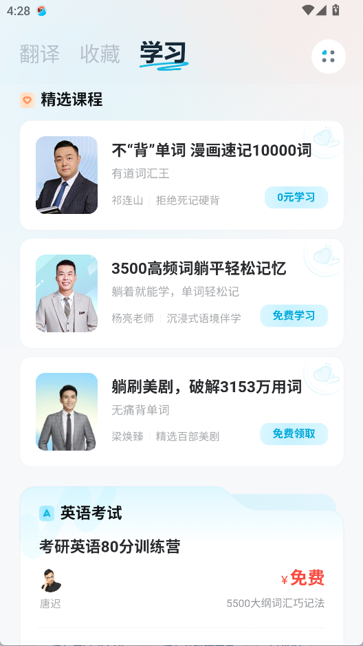 3、学习场景:拍照翻译52种语言,输出结果并附带发音及参考例句,助力学习。