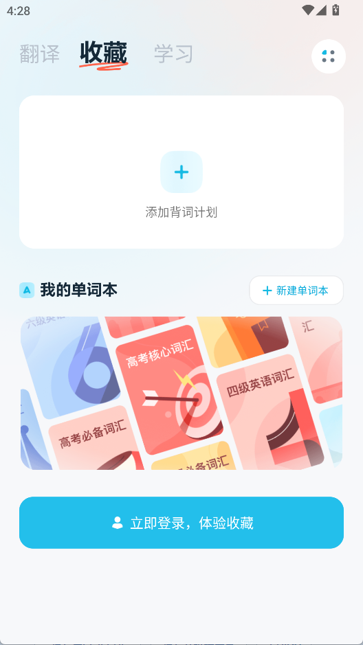 2、收藏界面可以添加背词计划
