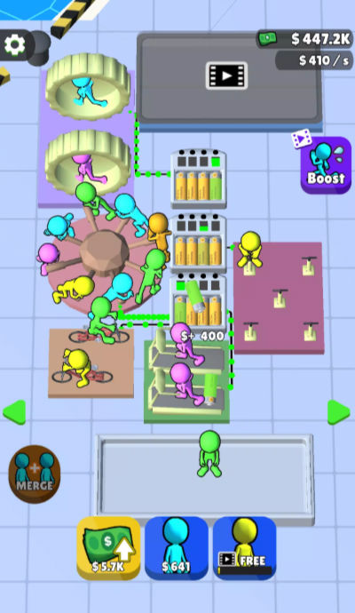 2、大量的小人等待着你的招募,合理地分配收入和支出,将不同的小人台并,增加获得的金币。