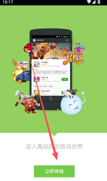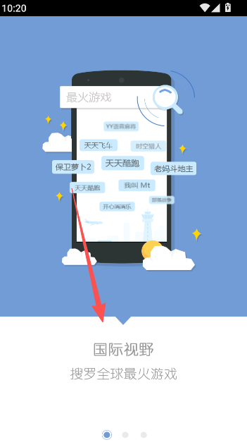 1、点击打开快快游戏盒软件,向右滑动屏幕,即可查看游戏功能介绍内容。