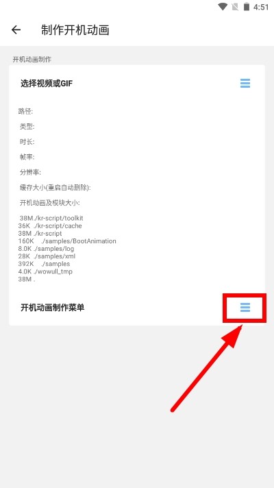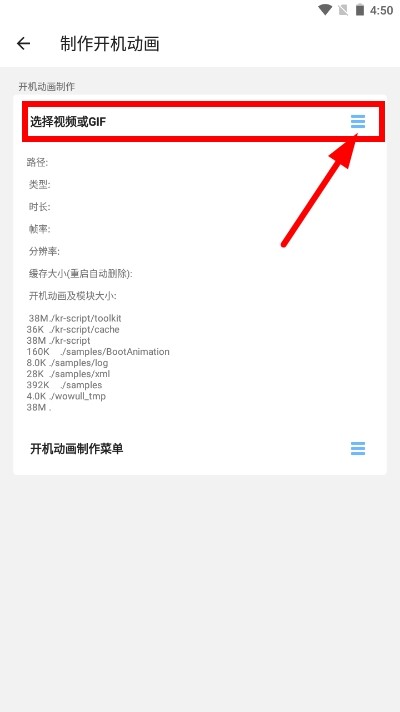 4、点击开机动画板块,找到制作菜单右侧的更多功能按钮并点击,解锁更多操作。