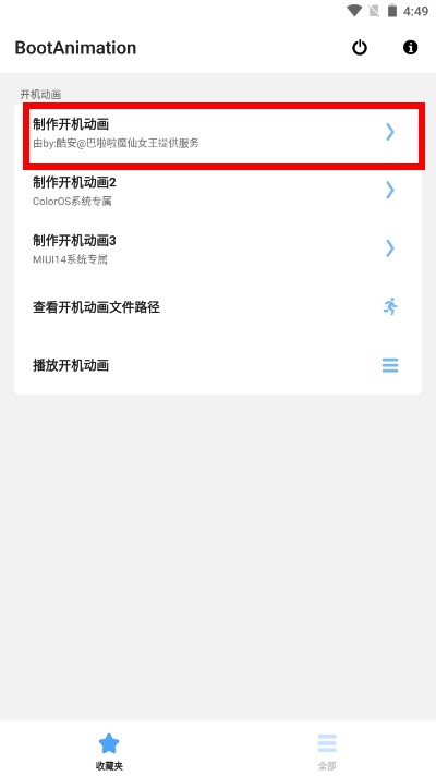 1、打开并进入BootAnimation软件,进入首页后,找到并点击“制作开机动画”选项。