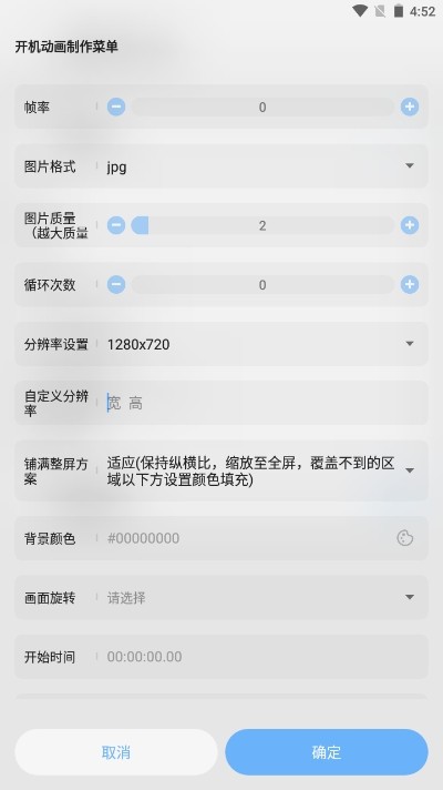 5、根据自身制作需求,灵活调整开机动画的帧率、分辨率等相关参数。