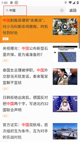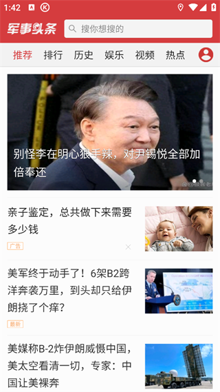 2、若有特定想看的内容,可通过软件搜索功能,输入关键词查找相关军事资讯。