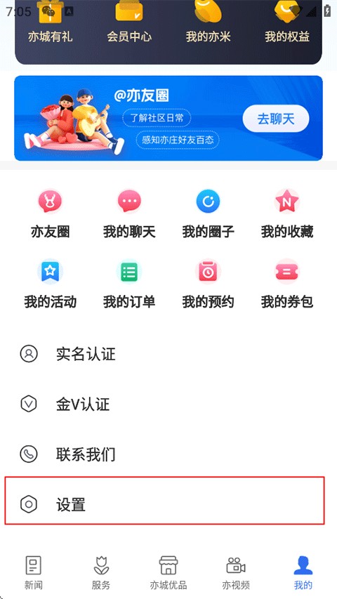 1、打开尚亦城App,进入主界面后,点击底部“我的”板块,再选择“设置”选项。