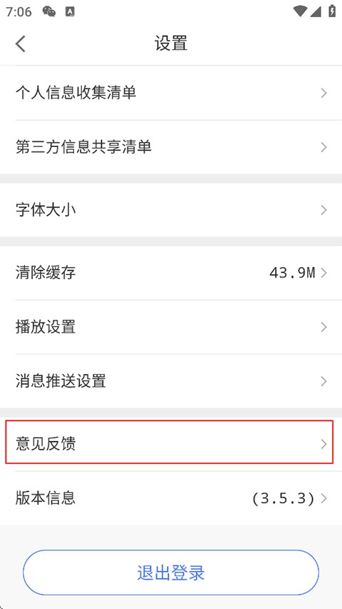 2、在设置页面中,仔细查找并点击“意见反馈”,进入反馈操作界面。