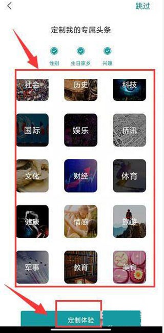 6、切换至兴趣设置页,勾选感兴趣的标签,完成后单击“定制体验”即可。