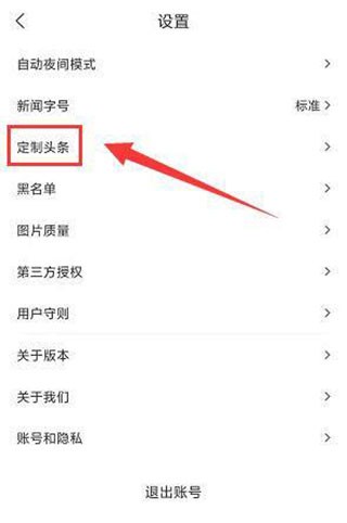 3、进入设置界面后,找到“定制头条”选项并单击,开启专属头条定制。