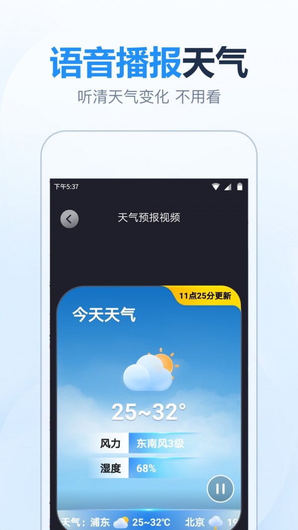 4. 查看天气:在主界面上,用户可以查看当前的天气状况、温度、湿度、风力等信息,以及未来几天的天气预报。