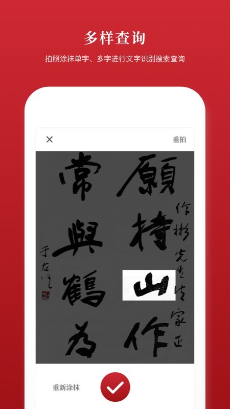 -多种智能查询:支持输入单字、词语、成语搜索,也可直接拍照涂抹单字、多字进行文字识别搜索查询。满足不同场景需求,智能方便。