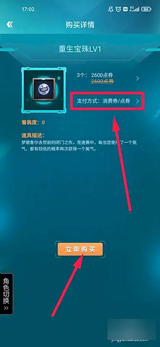 4、在详情页将支付方式设定为【消费券/点券】,随后点击【立即购买】按钮完成购物流程。