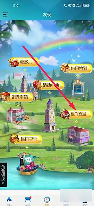 2、在发现页面轻触【掌飞商城】入口。