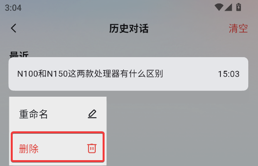 2、进入历史对话界面,点击右上角的按钮清空全部对话