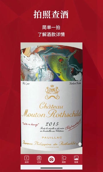 1. 拍照查酒“黑科技”:支持多语言酒标识别,即使酒款未被收录,系统也会在24小时内补充信息,确保用户体验。例如,用户拍摄一款小众意大利酒标后,APP不仅返回酒款基本信息,还关联同类风格酒款推荐,形成“发现-学习-购买”闭环。