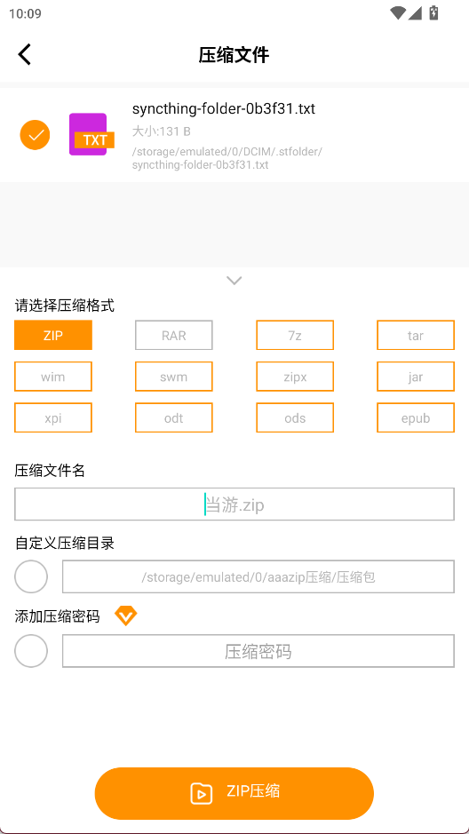 3、选择压缩格式后进行压缩