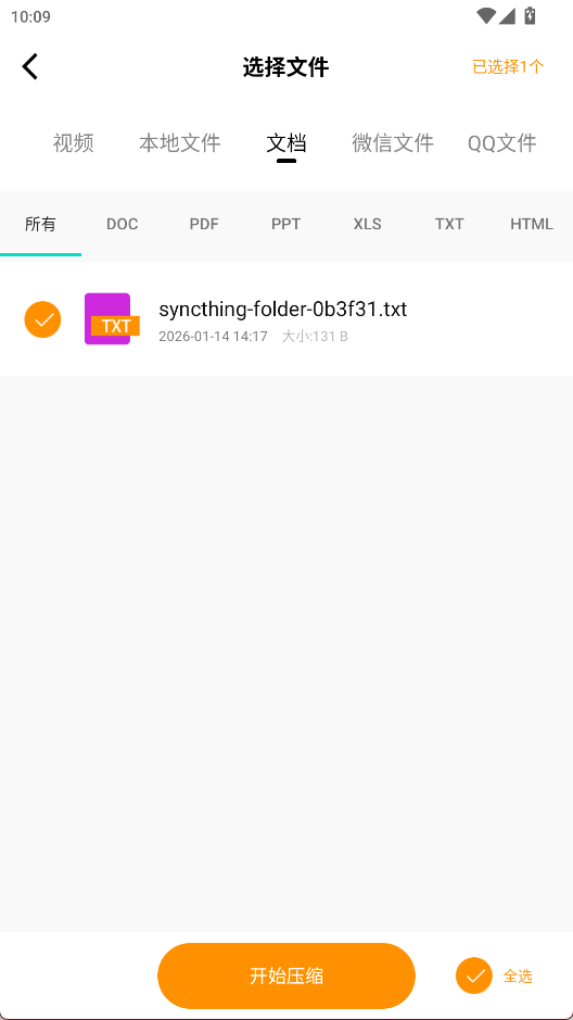 2、选择文件,点击开始压缩