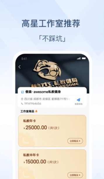 2、汇聚了超多健身工作室,让喜欢运动健身的用户更好选择。