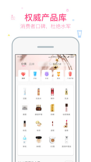 2、产品库:海量美妆产品信息,功效、肤质、品牌、年龄,多维度分类,360度无死角查口碑。