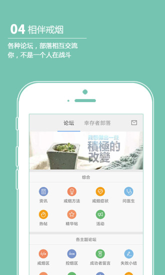 根据戒烟时间升级级别,全军事化规则,让戒烟更具成就感,当你烟瘾来袭时,多种克服烟瘾小方法帮助你顺利度过那5分钟,动态健康指数时时刻刻提醒你戒烟的好处,各种数据图表统计,让数据说话,告诉你自己是多么强大