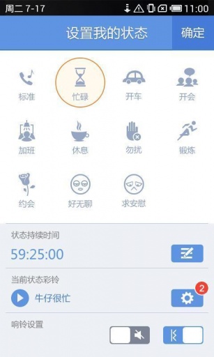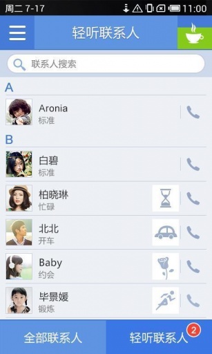 设置、个人彩铃管理等功能,使您在接听电话前就能将自己的状态传达给来电者,减少骚扰和误会,还可以在拨打电话前查看好友的状态,从而选择合适的方式去联系对方。