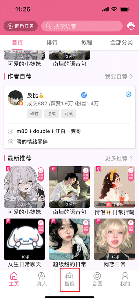 1、打开萌配音应用,点击页面下方的智能按钮进入对应界面。