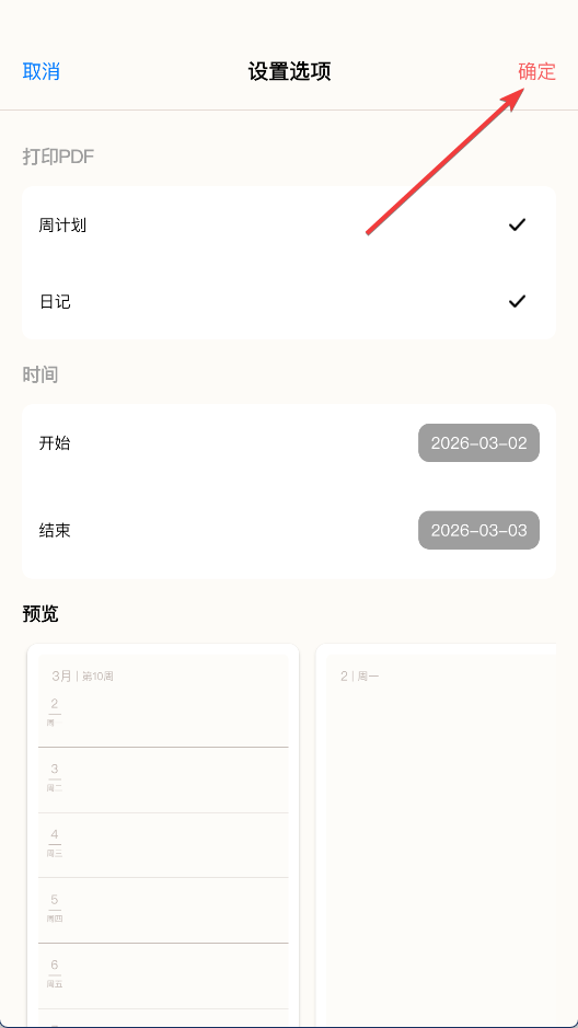 3、选择开始结束日期,点击右上角确定导出