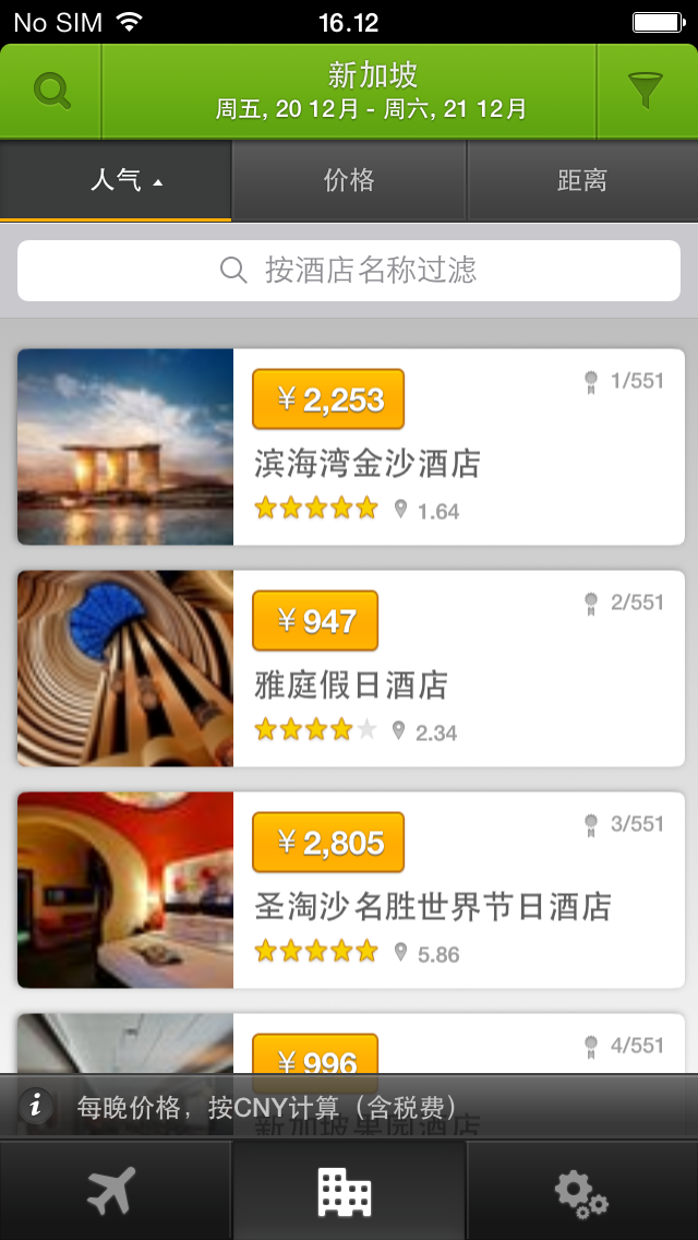 • 直接搜索您较喜欢的国内外机票酒店等旅游预订网站,包括 Booking 缤客,Agoda 雅高达,Expedia,亚航,酷航,虎航,捷星等上百家航空公司的官网,以及各家当地旅游服务在线预订商