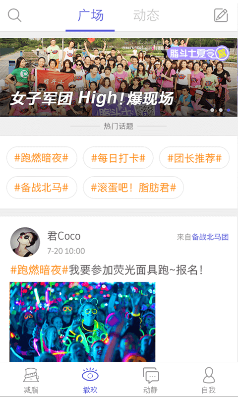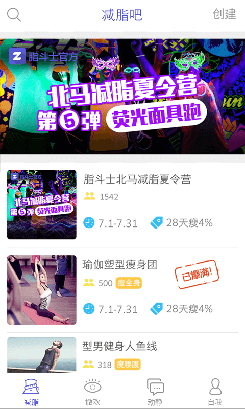脂斗士,北京减脂时代科技有限公司首款减肥减脂社交App,定义为较zuō(自我)在线减脂社群.在脂斗士,你可以根据兴趣及不同的减肥减脂方式,创建或加入各种各样的减肥减脂团:这里有瑜伽减脂团,跑步减肥团,运动瘦身团,骑行健身团,办公室瘦腰团,宅女瘦腿团,美女瘦脸团,马甲线锻造团,人鱼线pk团等等,带你体验各种趣味欢乐的花样减肥,趣味减脂.此外,你还能与减肥达人,减脂高手,健身教练,营养专家等,交友互动,分享交流,共同享瘦美丽健康生活.
