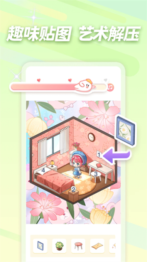 1. 贴纸拼图玩法革新:突破传统填色模式,用户可自由组合贴纸元素,通过叠加、旋转、缩放等操作创作立体化视觉作品。例如在“仙气古风”专辑中,用户可将花瓣、云纹、飞鸟等元素拼贴成动态场景,实现艺术创作与解压娱乐的深度融合。