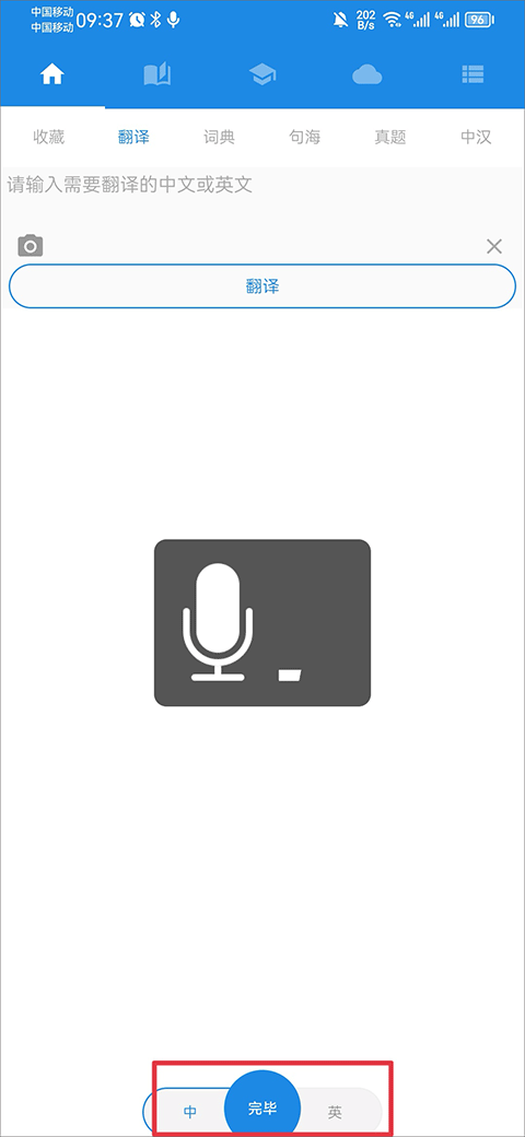 方式三:点击话筒,说出对应语种内容,识别完成后展示翻译结果。