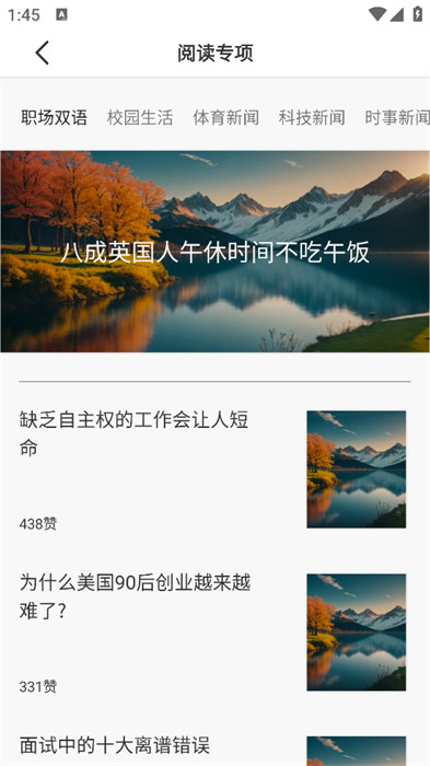 4、进入阅读专区,可根据自身需求,选择不同主题的阅读内容开展专项练习。