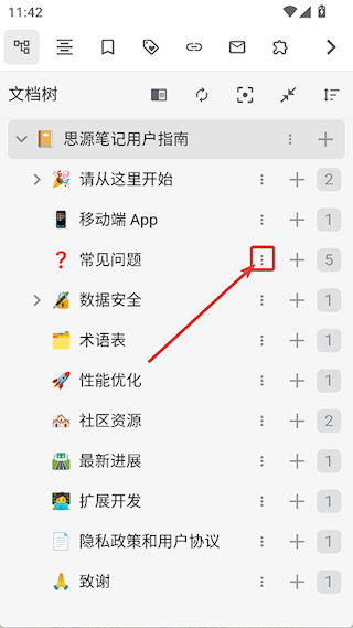 1、打开思源笔记app,点击左上角三横按钮
