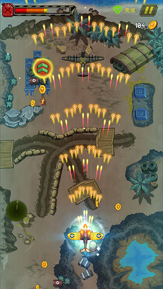 2、玩家进入关卡后,通过手指拖动战机,即可进行移动,并开始自动射击。