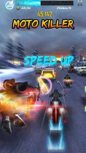 2、极简操控模式:通过左右倾斜手机就能灵活操控摩托车转向变道,长按屏幕即可触发加速操作,上手零门槛,适配移动端操作习惯。