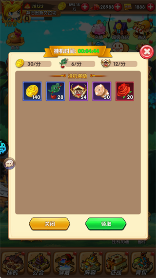 挂机时间越长,获得的奖励越多。VIP0玩家最多可累计8小时挂机奖励,记得定时上线领取。还可以使用「挂机加速」功能,一次性领取60分钟的挂机奖励,帮助你快速的清空积累的资源。