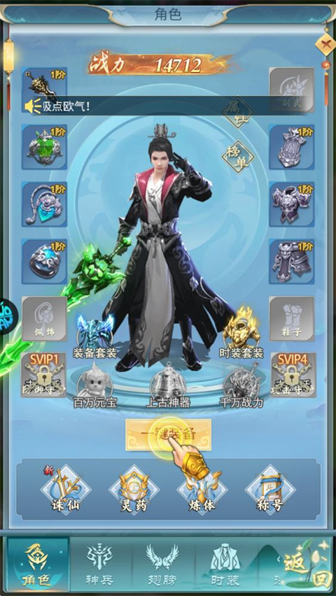 2、为角色一键装备,提升战力,