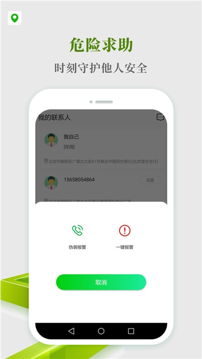 4. 一键求助:提供一键求助功能,用户可以提前设置好紧急联系人,在遇到危险时点击一键求助,系统会同时向多个紧急联系人发出通知,并获取到求助人的位置信息。