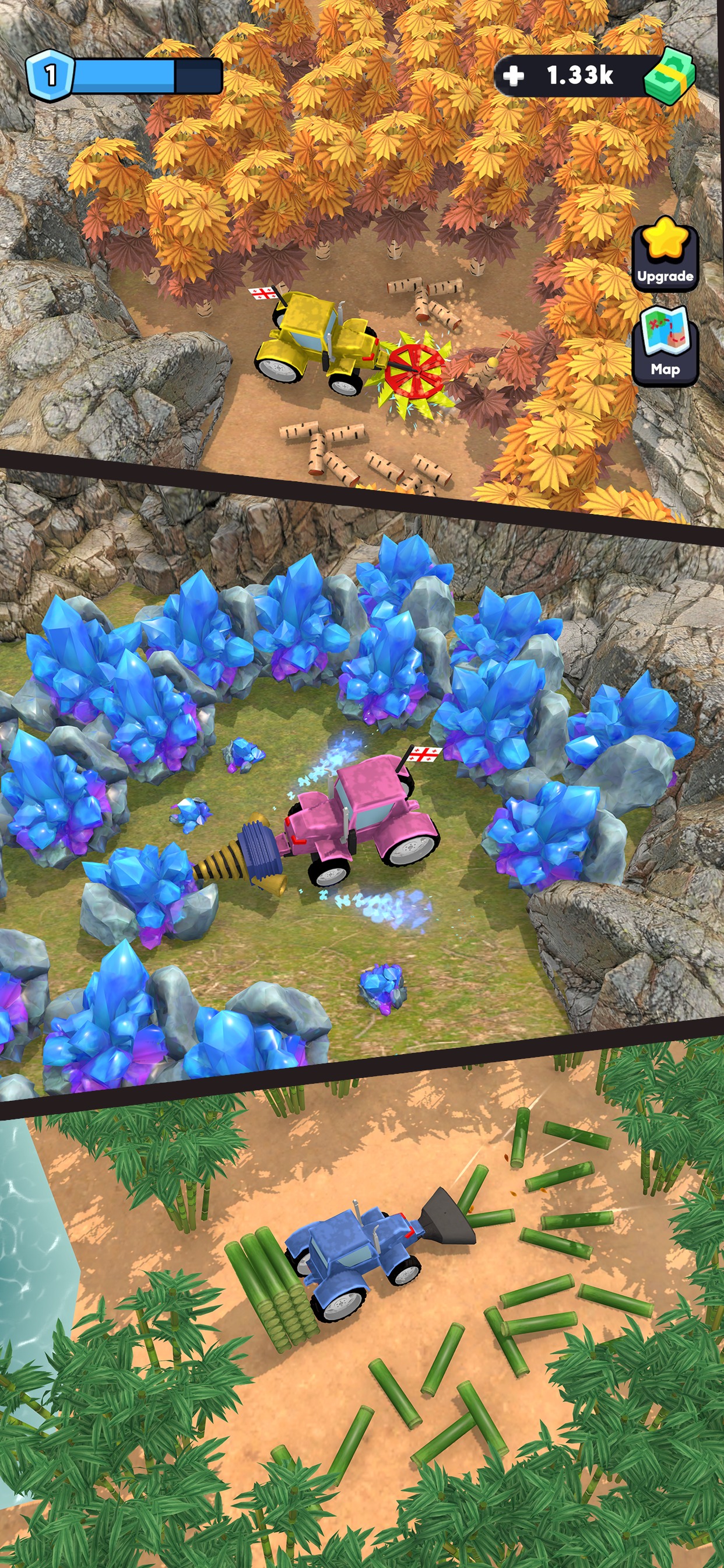 斧头砍树永远发不了财,真正的财富藏在流水线里。升级加工机器,让切割更快、打磨更细、分拣更准;优化工作站布局,把每一道工序都衔接得严丝合缝。工人的队伍也要跟上——伐木工负责砍树,运输工把原木拖回院子,加工工在机器前忙碌,装车工把成品码上卡车。给工人提升等级,分配最擅长的工作,让整条生产线像上了发条一样高效运转。解锁高科技升级,降低能耗、加快采伐周期,每一分钱都花在刀刃上。像真正的老板一样管理团队,确保每一环都不掉链子。
