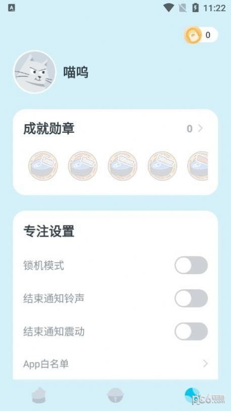 1. 界面设计:喵呜专注的界面设计简洁美观,画风唯美可爱,操作便捷。